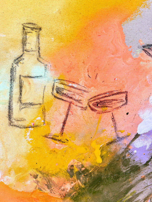 Ich male es von Hand auf handbespannter Naturbaumwolle, im Standardformat 100 × 100 cm – in den Farben, die zu euch passen. Kein Druck, kein Template, kein Massenprodukt. Sondermaße sind auf Anfrage gegen Aufpreis möglich. Jedes Lieblingsstück entsteht in einem Gespräch mit euch – und dann allein in meinem Atelier, mit Zeit, Farbe und echter Sorgfalt.